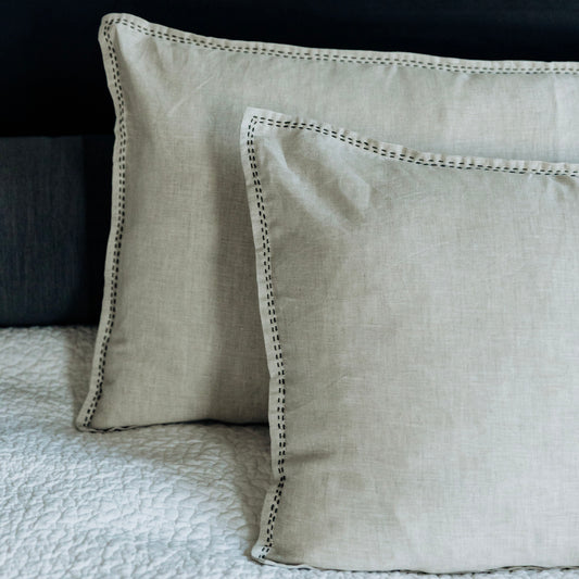 Long Linen Khaki Hand Stitched Lumbar Cushion