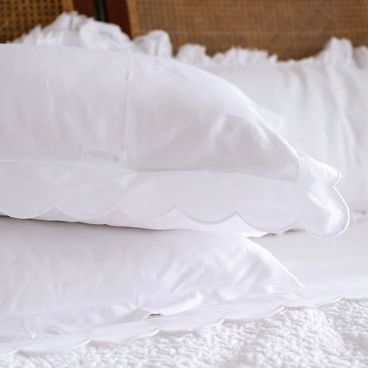 White Scalloped Edge 400TC Cotton Sheet Sets