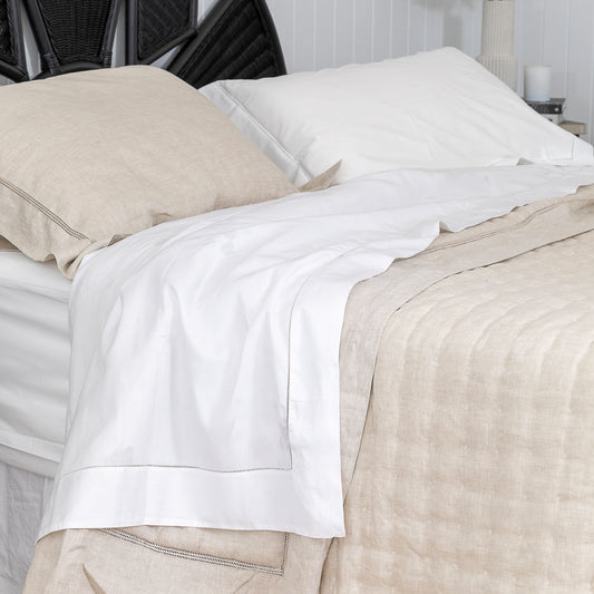 Bask King Size Hemstitched Natural Linen Pillowcases