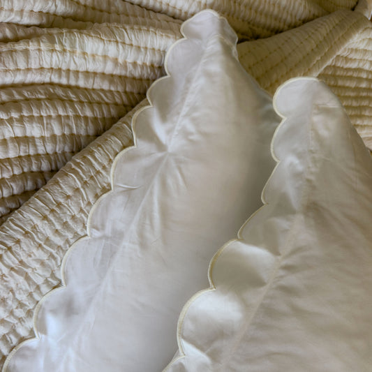 French Vanilla Scalloped Edge 400TC Cotton Euro Covers