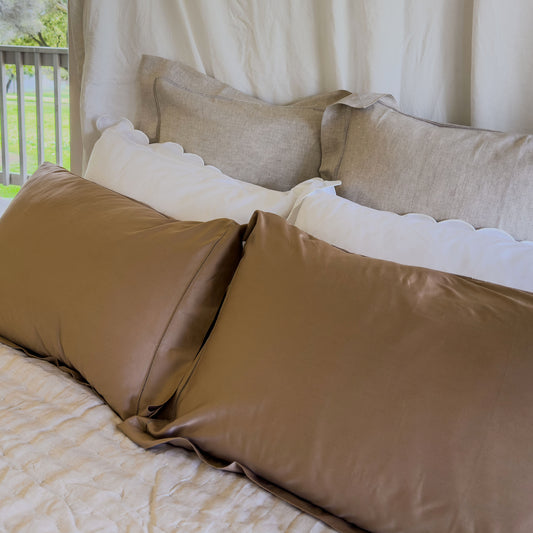 Belle Hemstitched Bronze 600TC Cotton Sateen Pillowcases