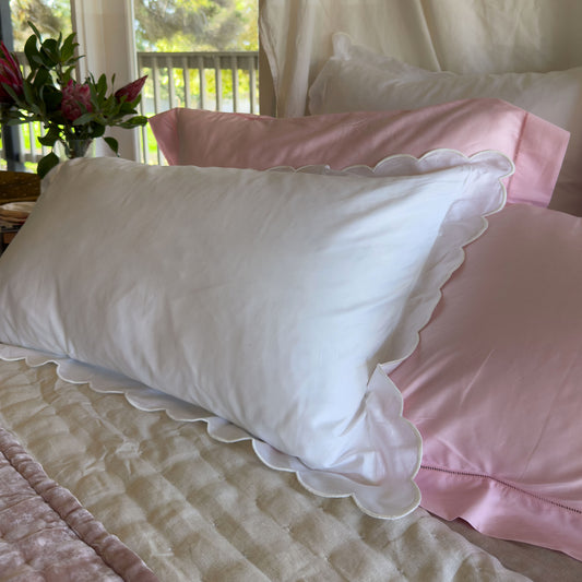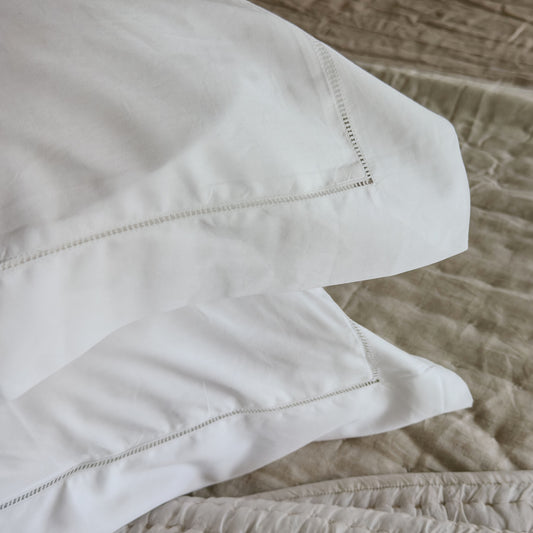 Belle Hemstitched Pearl 600TC Cotton Sateen Pillowcases