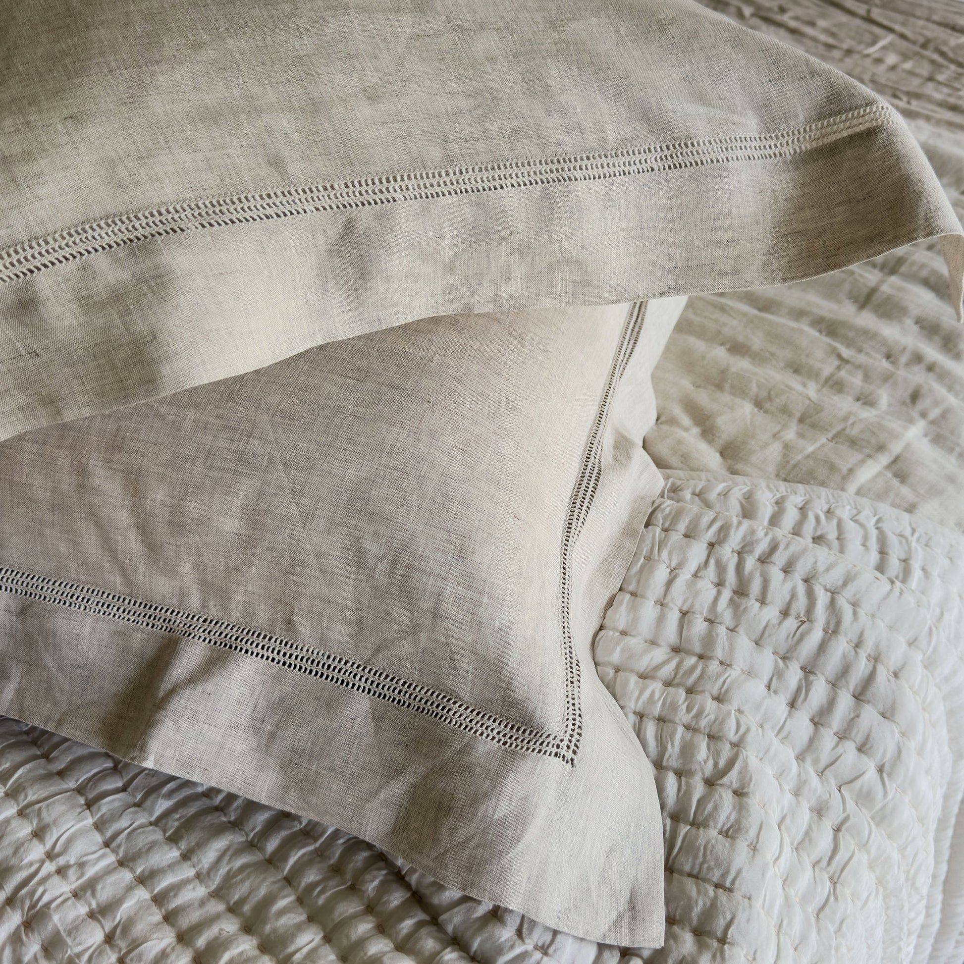 Matching Bask Hemstitched 50 x 70cm standard size pillowcases in Natural linen with a flange border are also available. Sold in pairs.