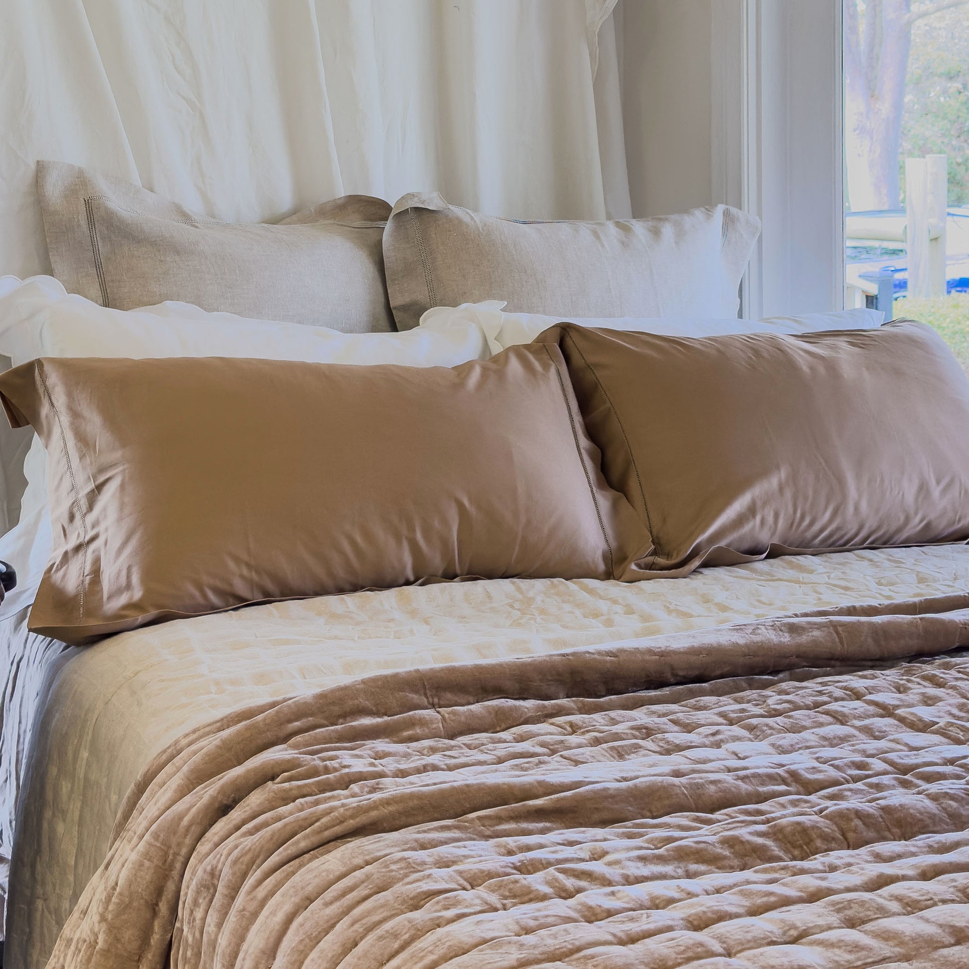 Belle Hemstitched Bronze 600TC Cotton Sateen Pillowcases