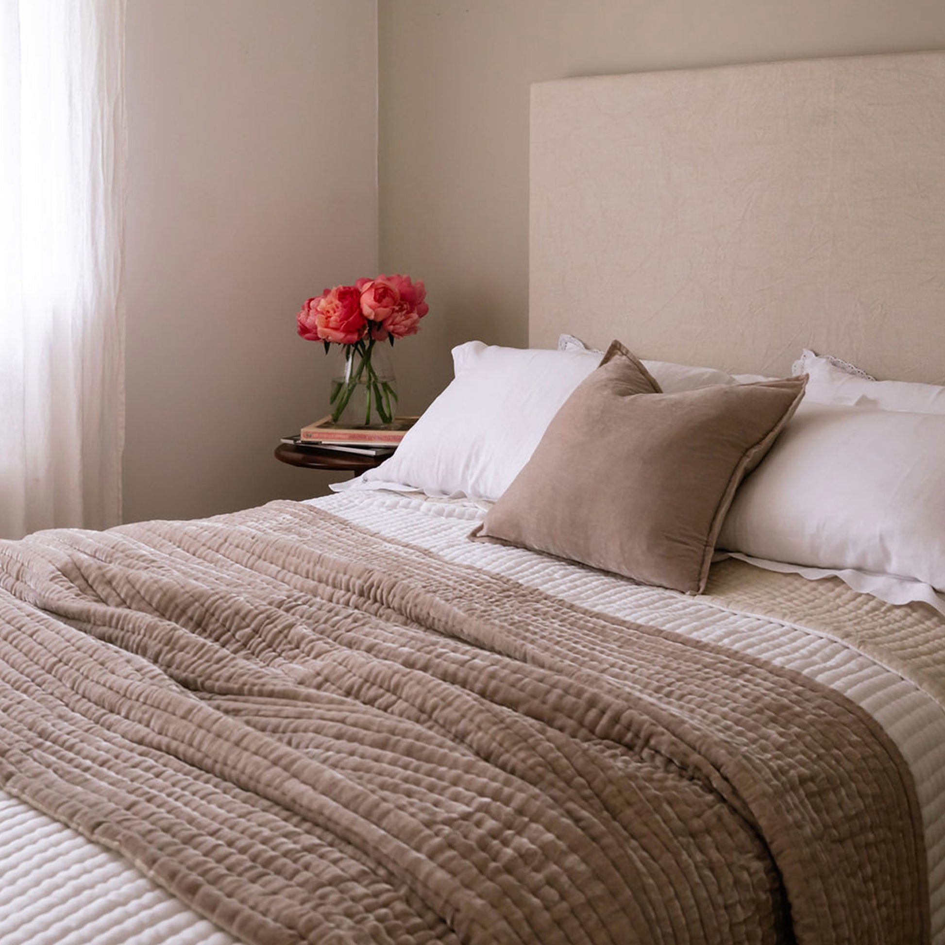 Perfect to layer over the end of the bed for an added touch of warmth and colour. A versatile size that fits a king, queen, double, king single or single bed. Matching 50 x 50cm pewter grey silk velvet & natural linen cushions are available separately.