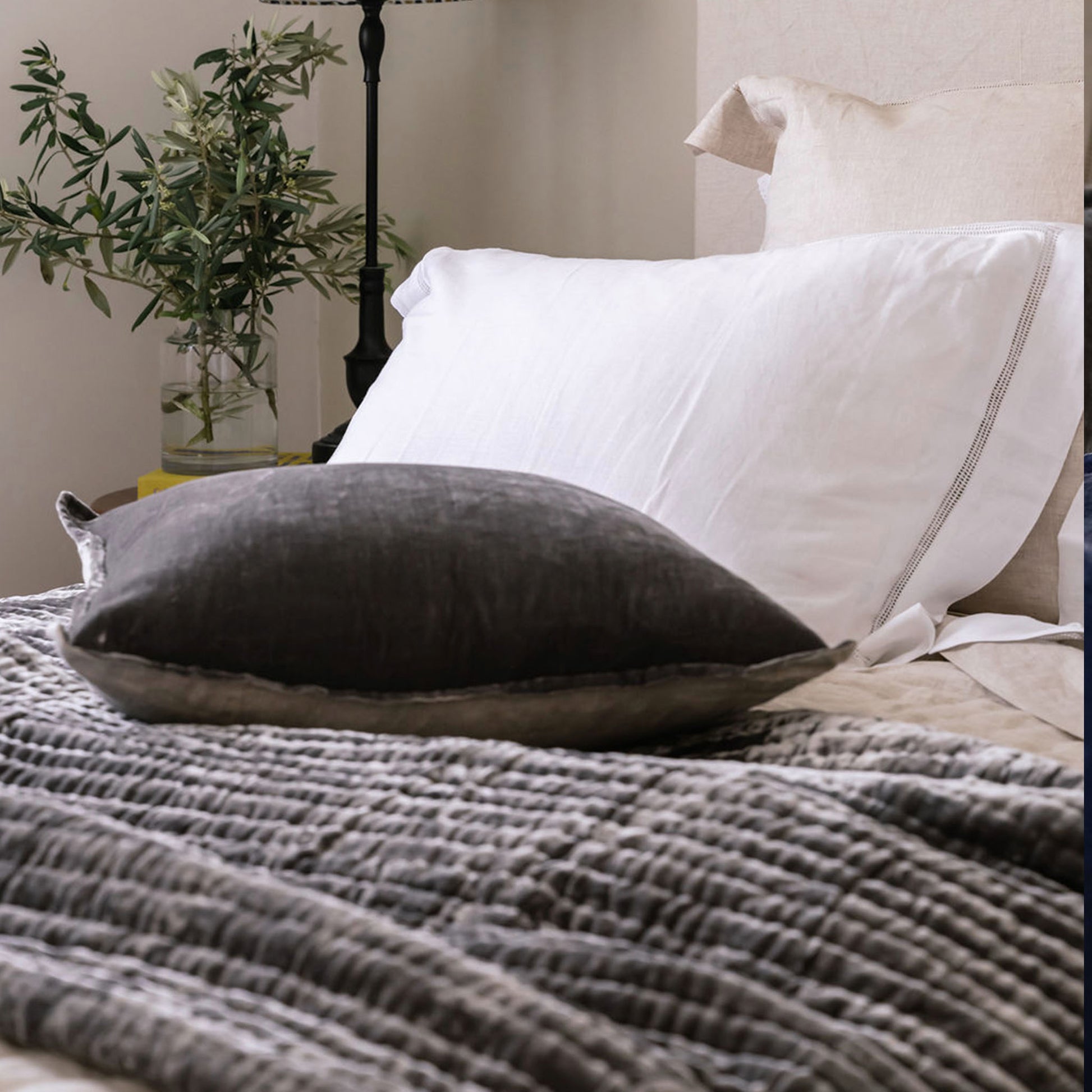 Perfect to layer over the end of the bed for an added touch of warmth and colour. A versatile size that fits a king, queen, double, king single or single bed. Matching 50 x 50cm pewter grey silk velvet & natural linen cushions are available separately.