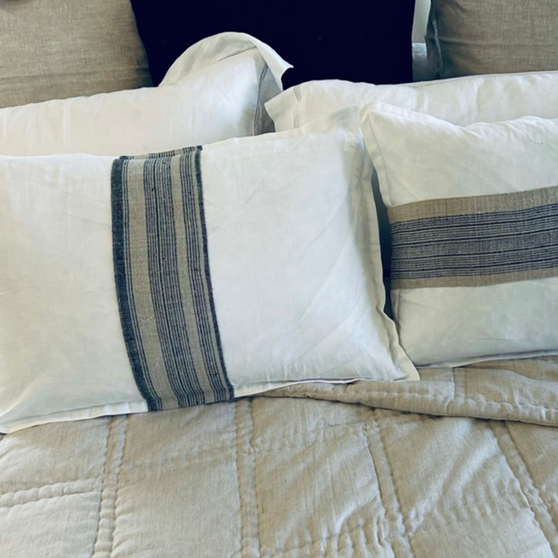 Stripe Hemp Panel Linen Lumbar Cushions